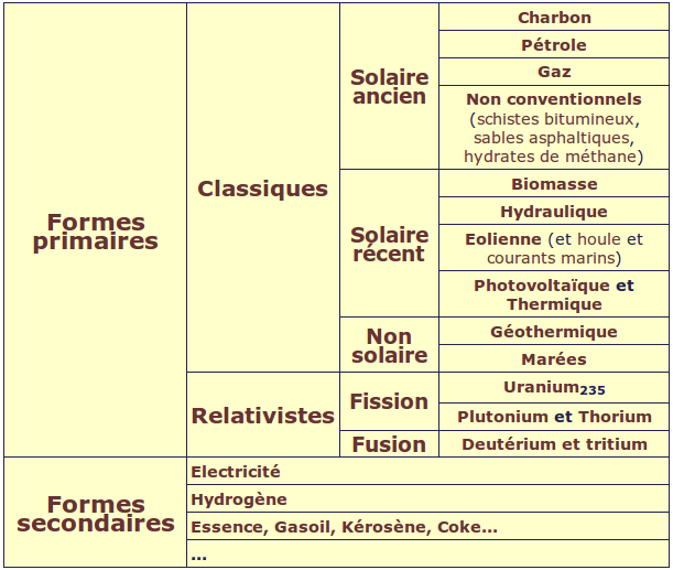 Classification des énergies