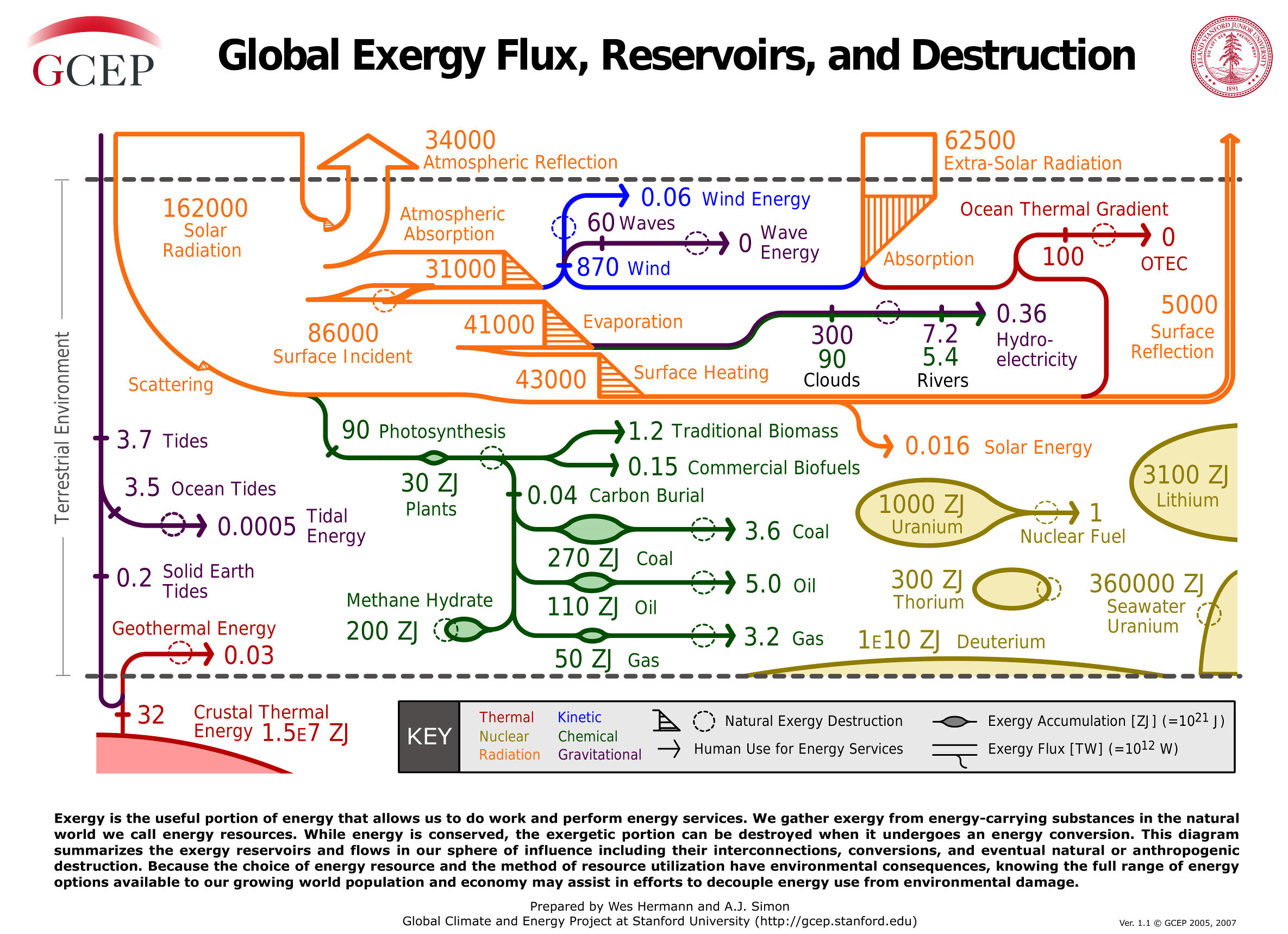 [1] Voir sur le site du GCEP : Quantifying global exergy resources ; Weston A.Hermann 2006.