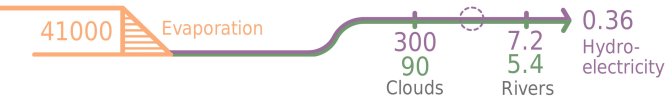 Cette analyse énergétique ne doit cependant pas faire oublier combien le cycle de l’eau est essentiel pour la vie de l’humanité. Pas de vie sans eau ! Plantes, animaux et humains en dépendent pour s’hydrater. Les fonctions que le cycle de l’eau remplit sont très nombreuses et parfois vitales, allant de l’arrosage et de l’irrigation des cultures au transport fluvial ou à l’agrément des plans d’eau bucoliques.
