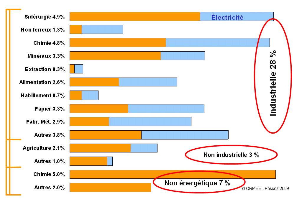 - 39% pour la consommation résidentielle, institutionnelle et le tertiaire, bref, le chauffage (surtout) et la consommation des appareils utilisés à la maison et au travail,