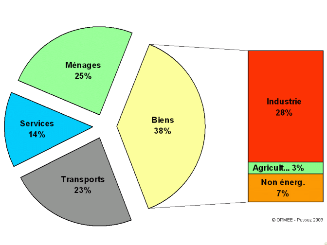- 23% pour les transports, des personnes et des marchandises, en parts plus ou moins égales.